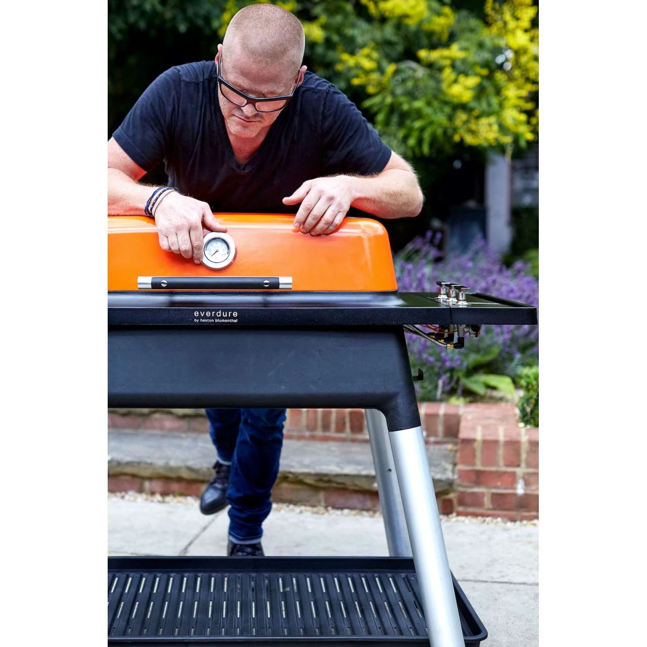 1x Everdure Furnace Gasgrill 3-Brenner mit Doppelboden Farbe Orange E3G4O inkl. 1x Premium Abdeckhaube HBG3COVER